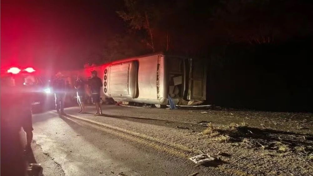 De acordo com a Polícia Rodoviária Federal (PRF), o ônibus acessou a contramão e atingiu rochas que estavam às margens da rodovia. Em seguida, o condutor conseguiu retornar ao sentido correto, mas colidiu novamente em um barranco de areia antes de tombar.